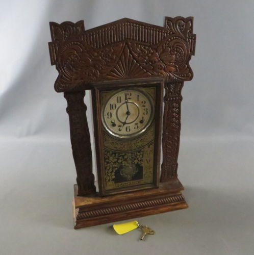 Antique Ingraham Carved Ornated Mantle Shelf Clock w/ Key