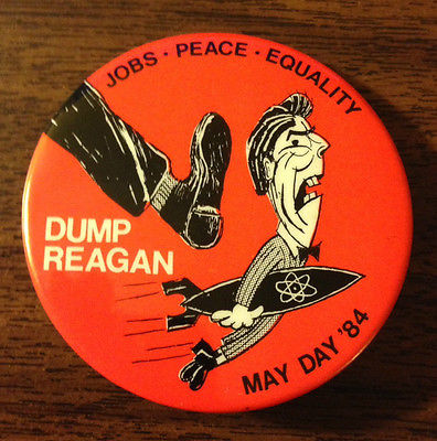 Title (ebay affiliate link): Great May Day '84 Dump Reagan Jobs/Peace/Equality Pinback Button