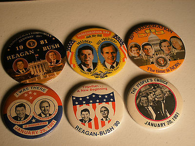 Six Vintage Ronald Reagan G. Bush authentic Buttons 3.5 and 3 inches