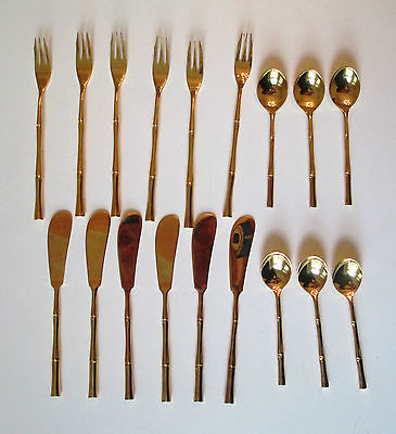 Title (ebay affiliate link): VINTAGE TOWLE SUPREME GOLD TONE 18 PIECE SILVERWARE SET WITH BAMBOO HANDLES