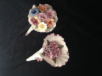 PAIR SMALL VINTAGE CHINA CAPODIMONTE CORNUCOPIA FLOWER FIGURINES ITALY ~MARKED