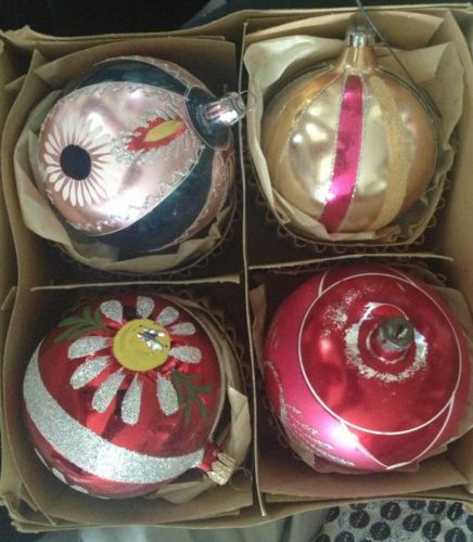 Title (ebay affiliate link): Blown Glass Mica Ornaments Vintage Christmas Large Bulbs 3.25"d Set Of 4 Antique
