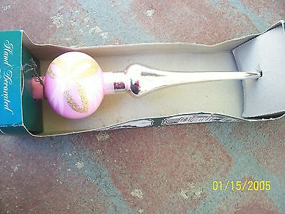 Vtg Pink with design Christmas Tree topper Mercury Glass W Germany box Silver
