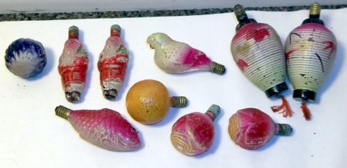 ANTIQUE CHRISTMAS LIGHT BULB LOT - SANTA, LANTERNS, BIRD, FLOWERS, FISH, ORANGE