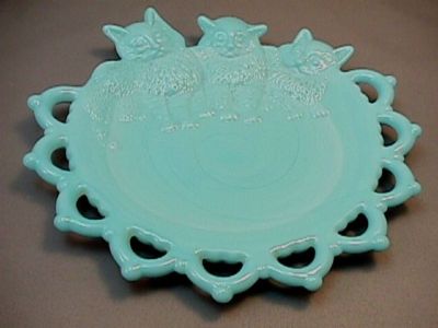 Fabulous Vintage Blue Milk Glass Westmoreland Cat Plate