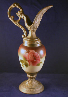 Antique Victorian Custard Milk Glass Hand Painted Ewer