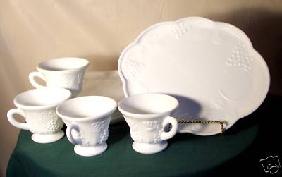 SET(4) HARVEST MILK GLASS PATTERN SNACK SETS by COLONY