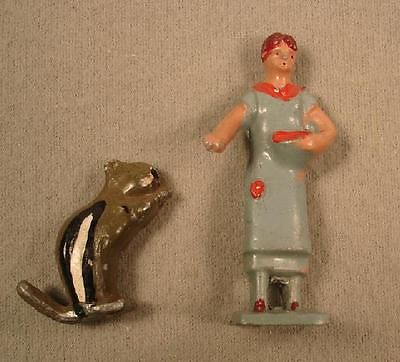 Title (ebay affiliate link): 2 LEAD TOY FIGURES, LINCOLN LOG FARM LADY AND UNMARKED CHIPMUNK