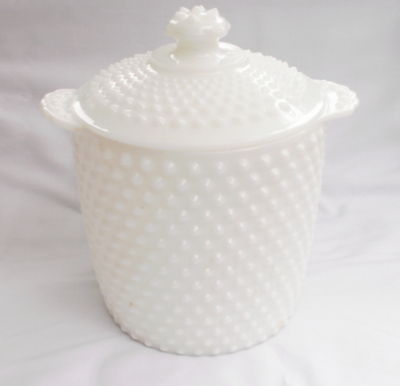 WHITE MILK GLASS COOKIE JAR & LID BY ANCHOR HOCKING