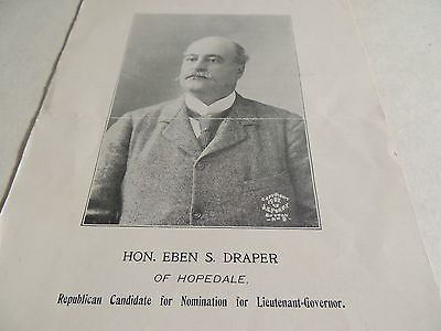 Old Political Campaign item Massachusetts Eben Draper for Lt.Governor