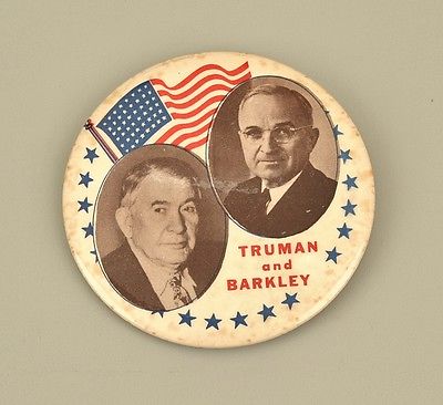 Title (ebay affiliate link): Old Political Pinback Button - Truman and Barkley - 3-1/2"