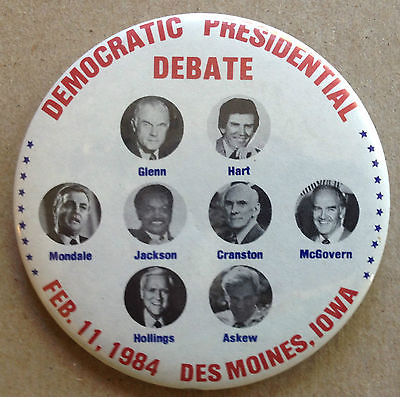 Democratic Presidential Debate Pinback Button 1984 Mondale McGovern Glenn Hart