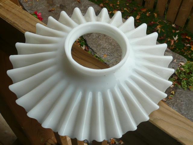 ANTIQUE MILKGLASS MILK GLASS RUFFLE OIL LAMP SHADE