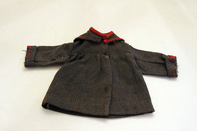 Title (ebay affiliate link): Lovely Antique Dark Gray Bisque DOLL COAT Jacket Pleats Red Trim Hand Stitched