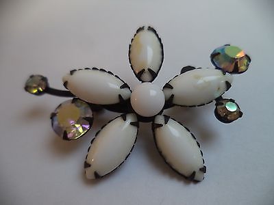 Title (ebay affiliate link): STUNNING VINTAGE ESTATE DARK TONE AB RHINESTONE MILK GLASS FLOWER BROOCH!! 5461U