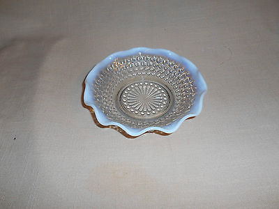 Beautiful! Hobnail, round bowl with scalloped edge, clear with milk glass trim.