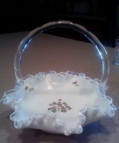 Title (ebay affiliate link): milk glass ruffle edge candy dish with hand painted violets