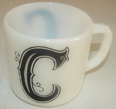 FEDERAL C INITIAL WHITE MILK GLASS MUG CUP