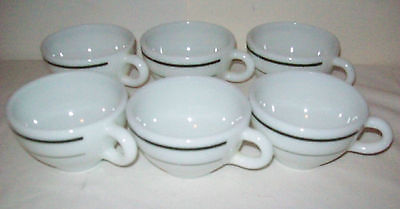 6 VINTAGE PYREX TABLEWARE CORNING MILK GLASS GREEN BAND COFFEE CUPS USA