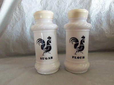 Title (ebay affiliate link): 2 PC. HAZEL ATLAS WHITE MILK GLASS ROOSTER FLOUR & SUGAR SHAKERS