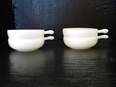 Title (ebay affiliate link): 4 Vintage White Milk Glass Individual Handle Casserole Soup Cereal Bowls