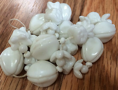 Vintage Czechoslovakia Milk Glass White Flower necklace Beads Vintage Estate