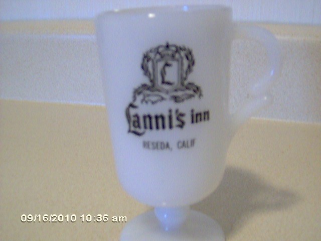 Milk Glass Footed Mug, Lanni's Inn, Reseda, Ca