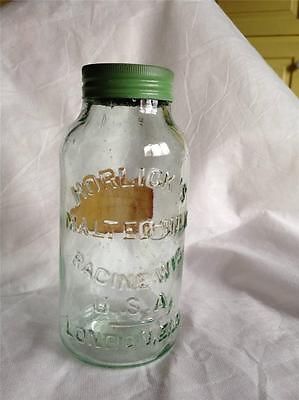 Antique Green Glass Bottle Green Tin Lid~Horlick's Malted Milk~U.S.A. & England