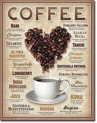 Types Of Coffee Beans Tin Cafe Sign Retro Kitchen Wall Room Decor Gift USA 16"