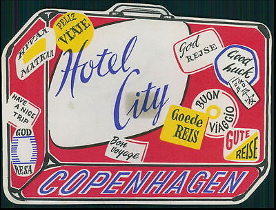 CITY Hotel old luggage label COPENHAGEN Denmark bag Luggage