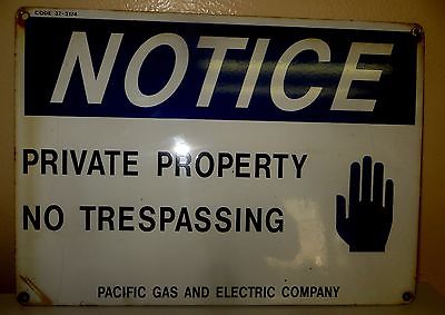 Private Property No Trespassing porcelain Sign PG&E vintage 10"x14"