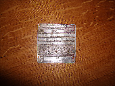 1960's Industrial Crouse Hines Company Nameplate Hazardous Locations Made USA