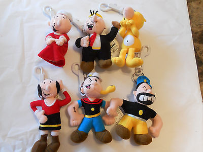 Vintage 6 Popeye characters stuffed key chains Olive Oyl Bluto Swee Pea Wimpy +
