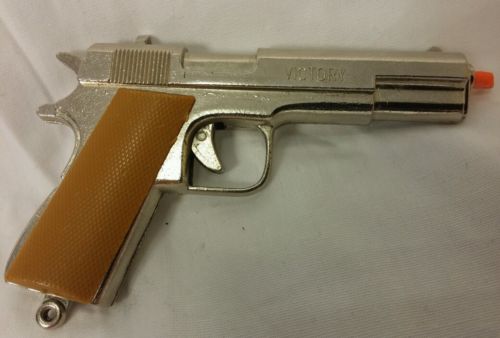 Title (ebay affiliate link): MINT Vintage Victory Mini Toy Cap Gun 45 cal Pistol Working Keychain NO RESERVE