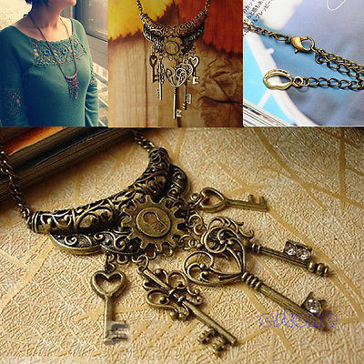 Title (ebay affiliate link): Retro Vintage Key Rhinestone Bronze Chain Pendant Necklace Gift New Arrival