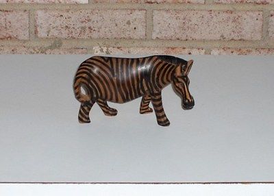 Carved Wooden Zebra Figurine 4 Inches Tall