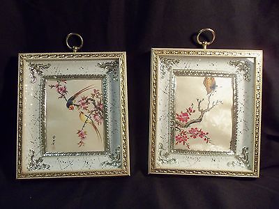 Set of 2 pictures GOLD accents BIRDS butterfly RECESSED frames