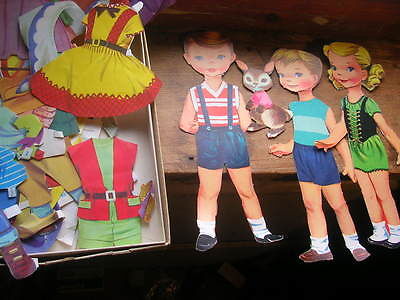 Title (ebay affiliate link): Vintage Cut Paper Dolls 2 Boys & 1 Girl & 1 Bunny Rabbit with Clothes