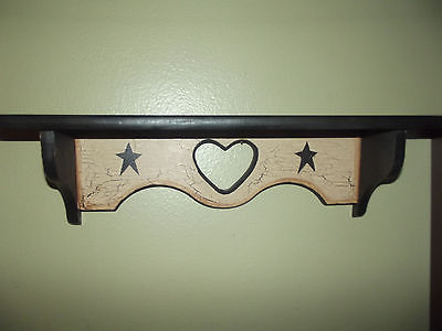 Primitive Crackle Wood Shelf w/ Heart Cut Out Black Star Country Decor