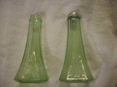 VINTAGE GREEN DEPRESSION SALT AND PEPPER