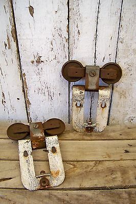 2 Antique Hanging Barn Door Track Rollers ~ Vintage Farm Hardware Parts Wheels