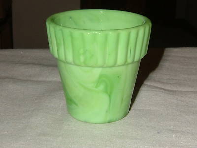 Vintage AKRO Agate, Green Slag Glass, Flower Pot