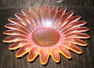 VINTAGE PINK GLASS IRIDESCENT LOOK FLOWER SHAPE BOWL NR