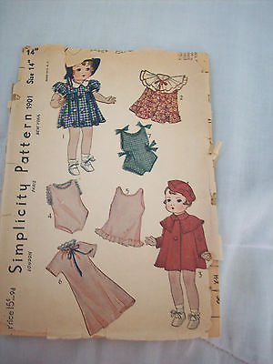 ANTIQUE DOLL PATTERN #1901 FOR DOLL CLOTHES 14" DOLLS