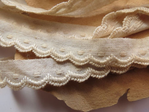 Title (ebay affiliate link): Tiny ANTIQUE Vtg SCALLOPED POLKA DOT RIBBON TRIM 3.3 yards doll bear embroidered