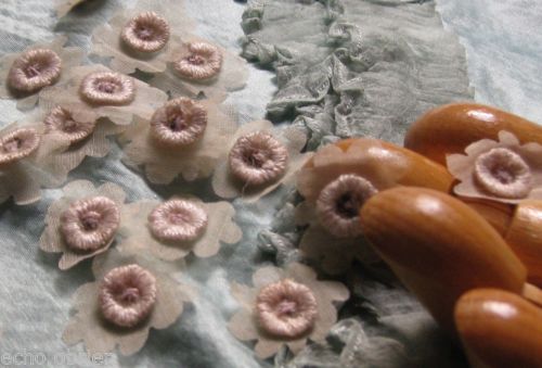 Title (ebay affiliate link): Antique LOT/20 Tiny Organdy/Lavender Embroidered Flower Motifs DOLLS/Hats 3/4"