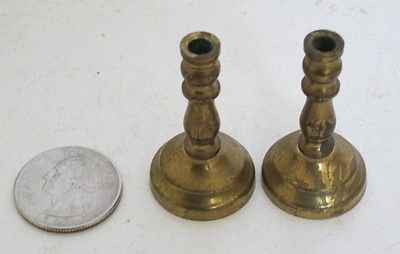 ANTIQUE MINIATURE DOLL BRASS CANDLE STICK HOLDERS - 1 3/4" HIGH