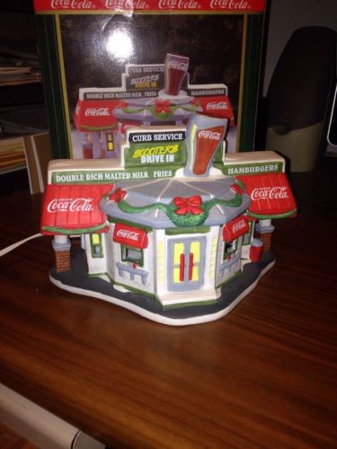 Title (ebay affiliate link): 1996 LIGHT UP Coca Cola Town Square Christmas Village Scooter's Drive In Coke