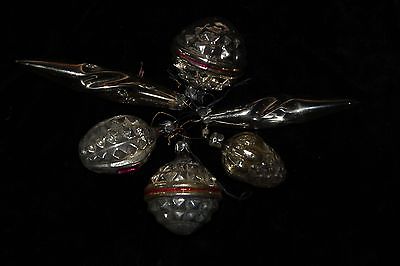 Lot : 6 Vintage old Christmas silver Glass Ornaments