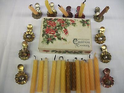 Vintage box of Christmas candles with 7 Candle holders Feather Tree